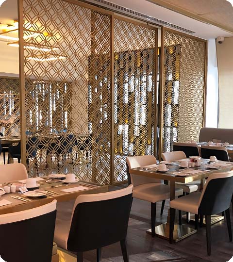 Các tấm vách ngăn kim loại trong các tòa nhà thương mại, chẳng hạn như văn phòng và nhà hàng, đang sử dụng loại vách ngăn kim loại kiến trúc này, phù hợp cho cả không gian trong nhà và ngoài trời. Chúng cũng bổ sung cho nhà ở, không gian xanh và các kiến trúc khác như sân trong.