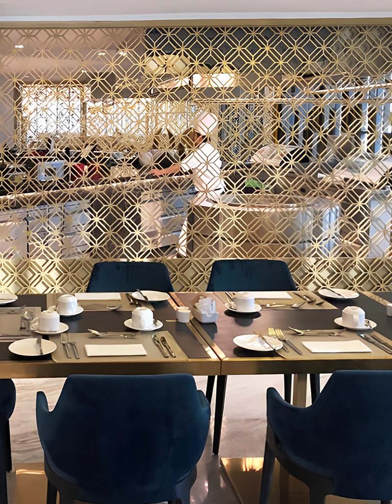Tấm vách ngăn có thể được sử dụng như một yếu tố trang trí trong thiết kế, được làm bằng kim loại như thép không gỉ, nhôm hoặc đồng thau. Thiết kế của nó toát lên vẻ phức tạp trong việc che nắng, cho phép ánh sáng và không khí đi vào đồng thời vẫn giữ được sự ngăn cách rõ ràng với khu vực bên cạnh.
